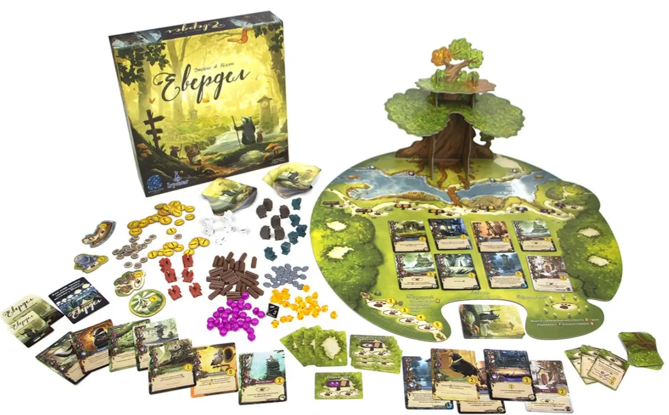 «Евердел» – это невероятно красивая евро игра, которая переносит игроков в волшебный мир, где они становятся лидерами звериных кланов, стремясь построить самый лучший город под покровом Большого Дерева. Игра известна своей красивой арт – стилистикой и глубокими стратегическими возможностями, объединяющими элементы размещения рабочих, управление ресурсами и розыгрышами карт.