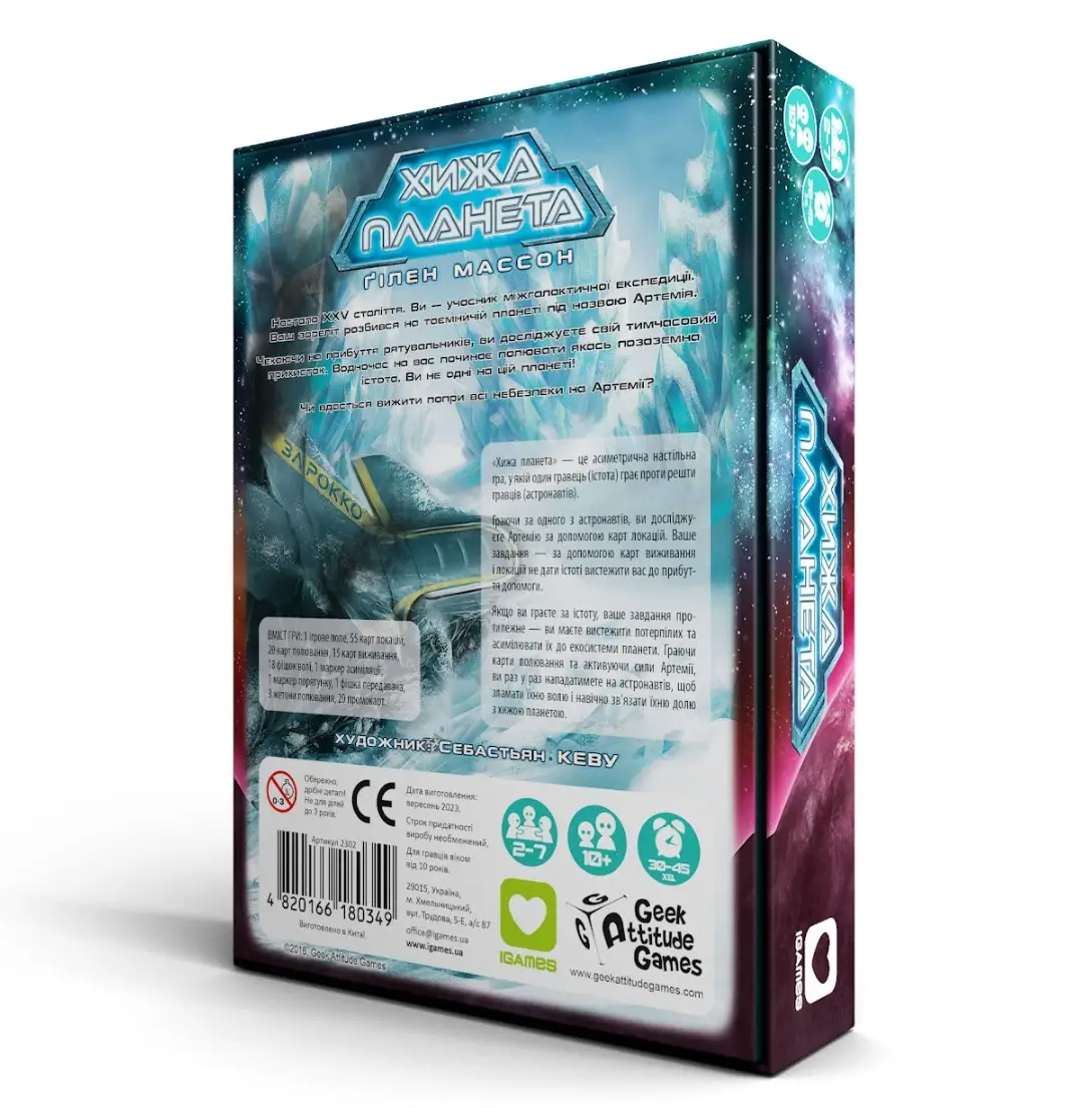 «Хижа Планета» – це захоплююча тематична карткова гра, у якій ви використовуєте вгадування та блеф, щоб досягти своєї мети, якою є виживання для Загнаного… або повна асиміляція для Істоти!