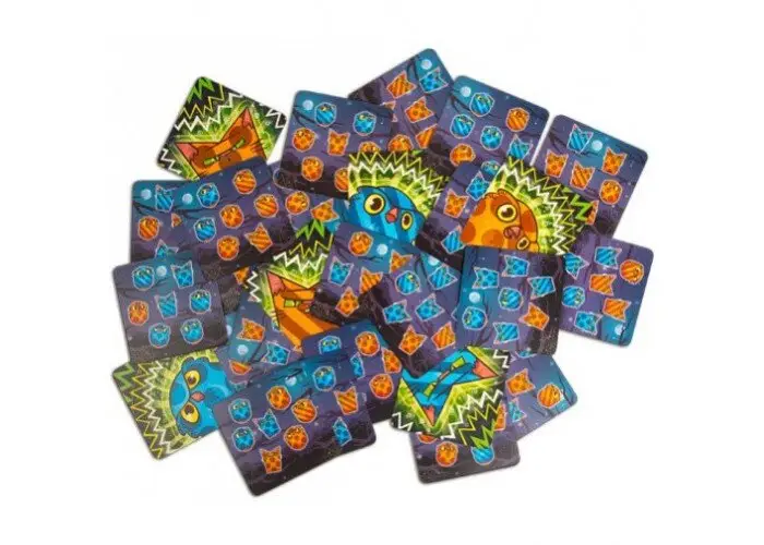 - Активный игрок бросает кубик с числами, открывает верхнюю карту из колоды. Задача игроков – быстро найти общий признак зверей, количество которых соответствует числу и схватить тотем с соответствующим признаком.