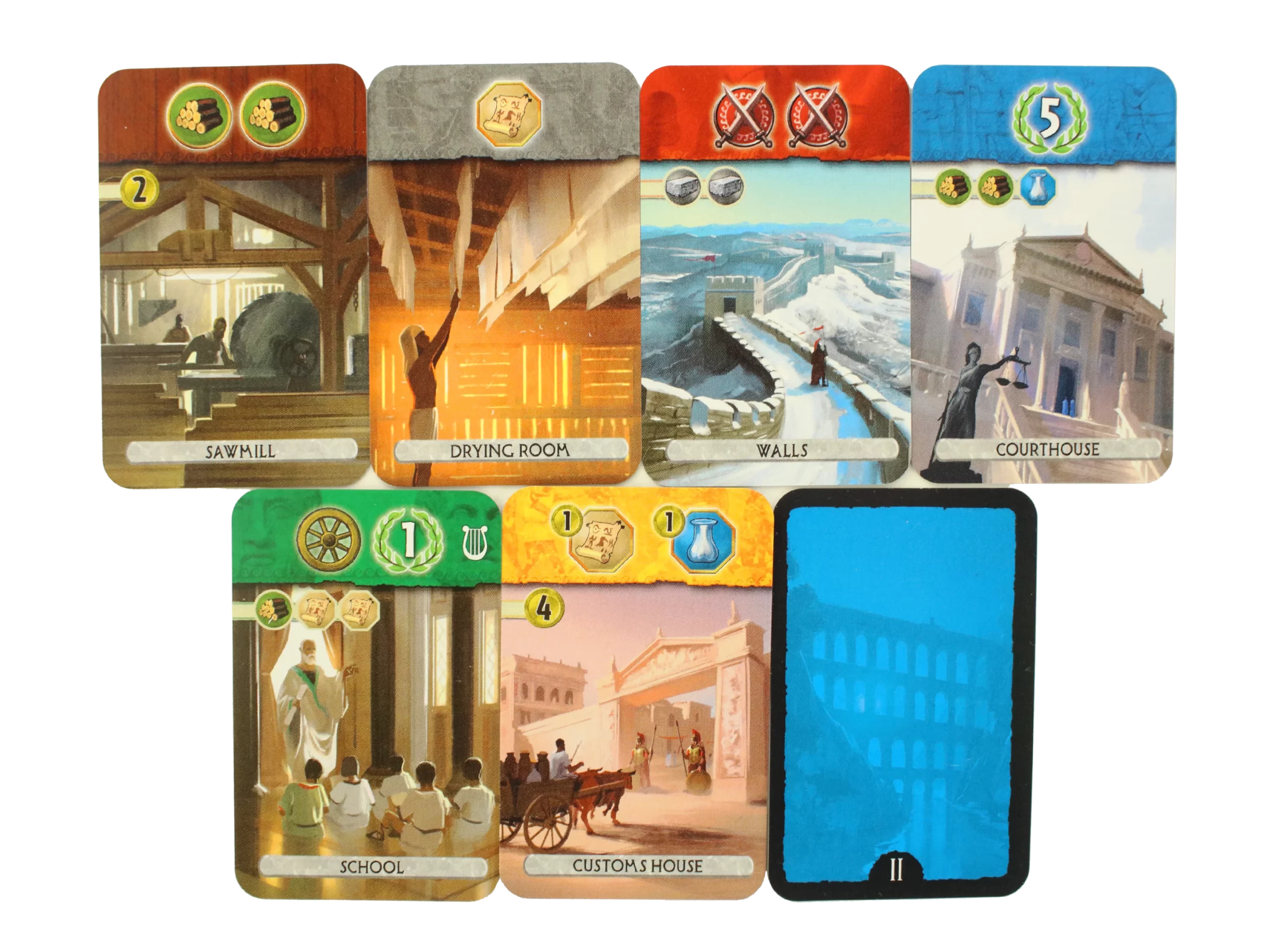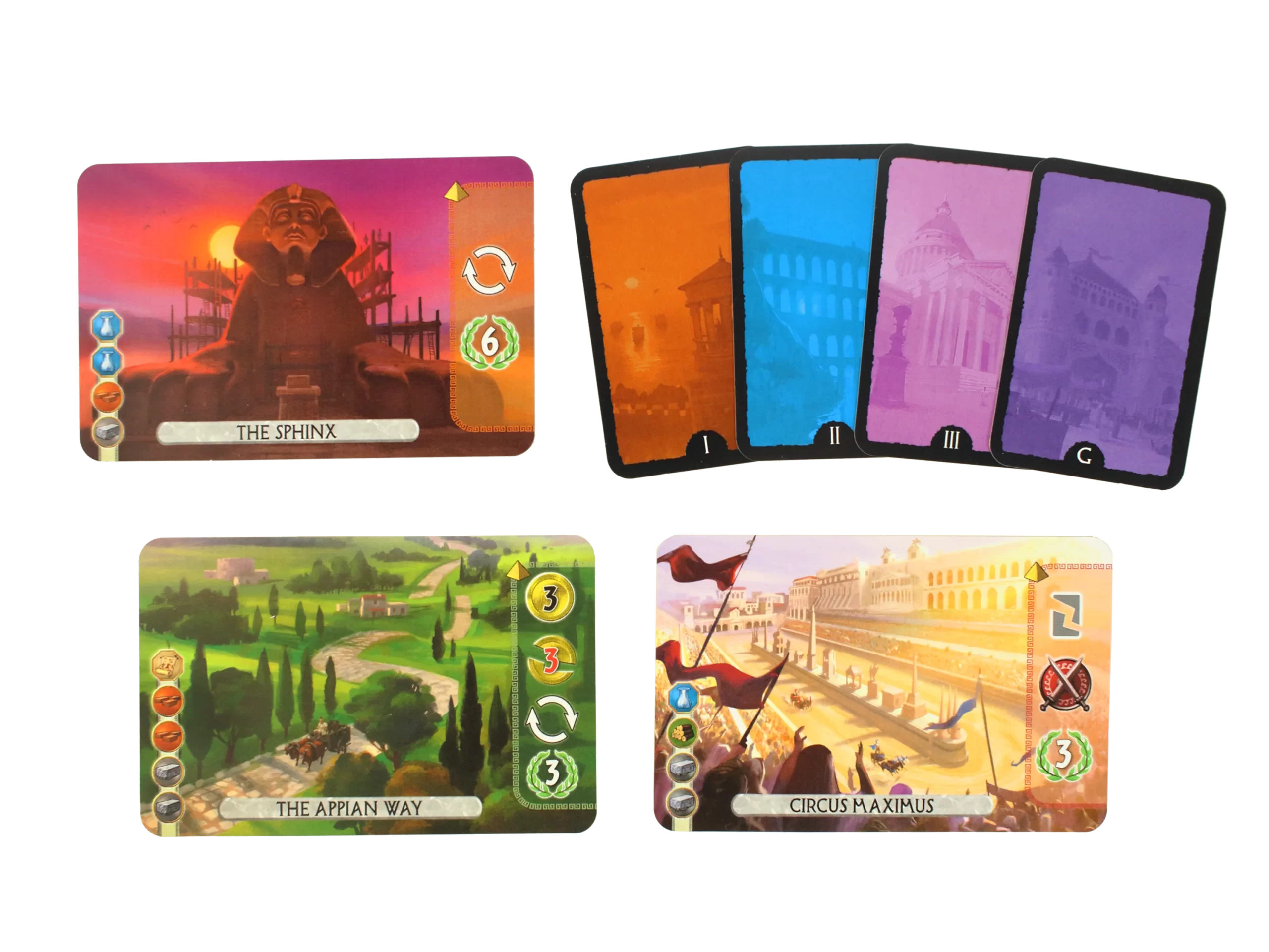 У грі дійти перемоги можна трьома шляхами. Перший – військовий, отримуючи очки за військові битви. Другий шлях – верх науково-технічного прогресу, гравець здобуде дострокову перемогу, якщо побудує 6 зелених карток з різними символами. Третій шлях – підрахунок переможних очок, зароблених протягом партії, до нього варто звертатися, якщо вам не вдалося здобути перевагу ні у військовій, ні науковій сфері. Також є 12 чудес світу, з якими кожна наступна гра буде цікавішою за попередню!